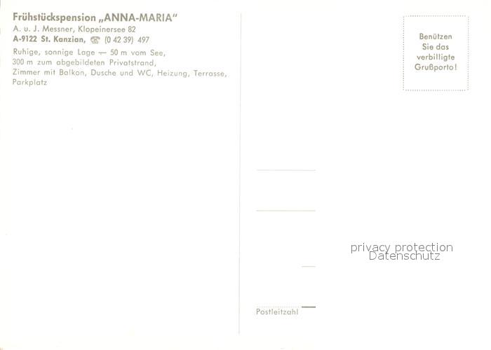 73591037 St Kanzian Klopeiner See Fruehstueckspension Anna Maria postalisch nicht gelaufen Erhaltung siehe scans [KathaD81] KatCode: 11390213020813