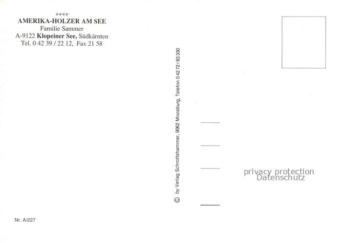 74076335 St Kanzian Klopeiner See Kaernten AT Hotel Amerika Holzer am See postalisch nicht gelaufen Fliegeraufnahme Erhaltung siehe scans [FriedD77] KatCode: 11390213020813