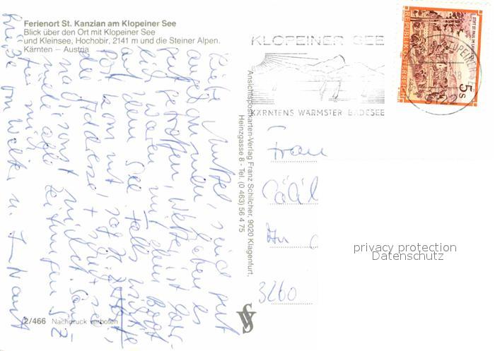 72773543 alte Postkarte St Kanzian Klopeiner See mit Hochobir und Steiner Alpen Fliegeraufnahme postalisch gelaufen Erhaltung siehe scans [FriedD77] KatCode: 11390213020813