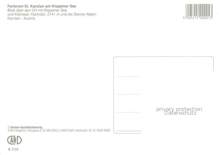 73341570 St Kanzian Klopeiner See mit Kleinsee Kitzelberg Hochobir Steiner Alpen Fliegeraufnahme postalisch nicht gelaufen Erhaltung siehe scans [FriedD77] KatCode: 11390213020813