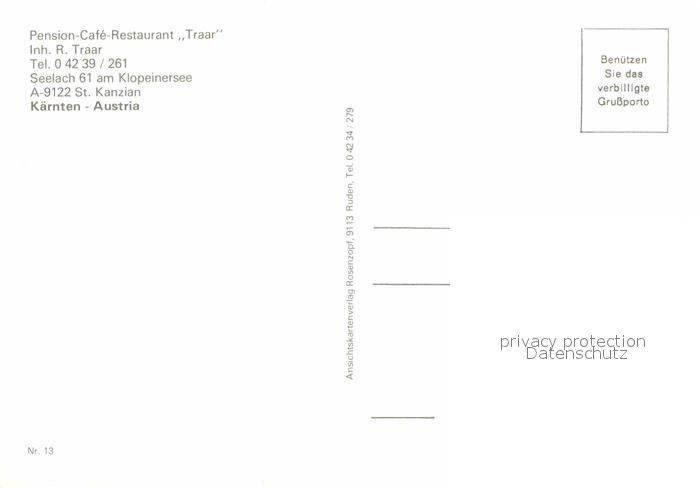 12637492 St Kanzian Klopeiner See Pension Cafe Restaurant Traar postalisch nicht gelaufen Erhaltung siehe scans [LiesaD40] KatCode: 11390213020813
