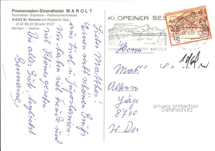 72257017 alte Postkarte St Kanzian Klopeiner See Promenaden Strandhotel Marolt Strandbad Hallenbad postalisch gelaufen Erhaltung siehe scans KatCode: 11390213020813