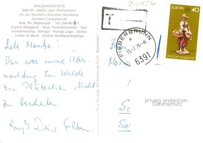 73854595 alte Postkarte St Kastl Waldgaststaette Gastraeume Theke Kirche postalisch gelaufen Erhaltung siehe scans [WerneD78] KatCode: 11110009186147