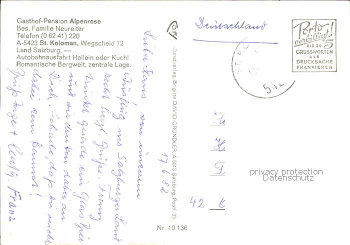 71901830 St Koloman Gasthaus Pension Alpenrose postalisch nicht gelaufen Erhaltung siehe scans KatCode: 11390