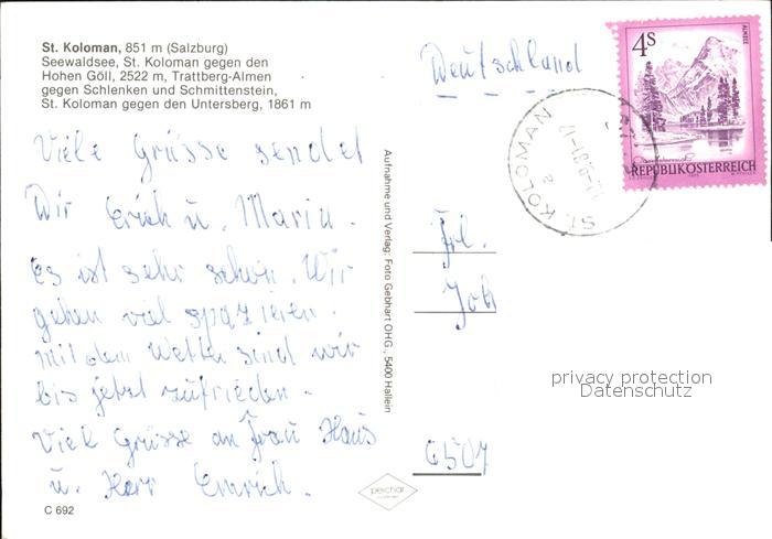 72464829 alte Postkarte St Koloman Seewaldsee Hohen-Goell Trattberg-Almen Schlenken postalisch gelaufen Erhaltung siehe scans KatCode: 11390