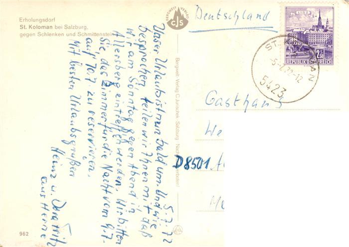 alte Postkarte St Koloman-Wegscheid AT mit Schlenken und Schmittenstein postalisch gelaufen Erhaltung siehe scans [WerneD78]