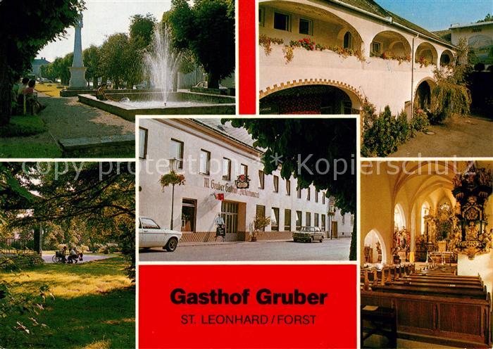 73231700 St Leonhard Forst Niederoesterreich Gasthof Pension Gruber Hauptplatz Springbrunnen Schlosspark Gotische Pfarrkirche 14. Jhdt. Innenansicht postalisch nicht gelaufen Erhaltung siehe scans [FriedD77] KatCode: 11390121031539
