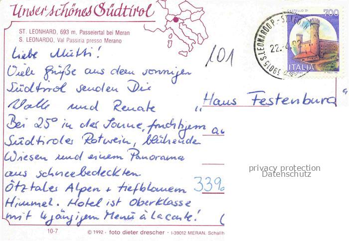 74110858 old postcard St Leonhard in Passeier San Leonardo in Passiria Bolzano IT Fliegeraufnahme postalisch gelaufen Erhaltung siehe scans [WerneD78] KatCode: 11240