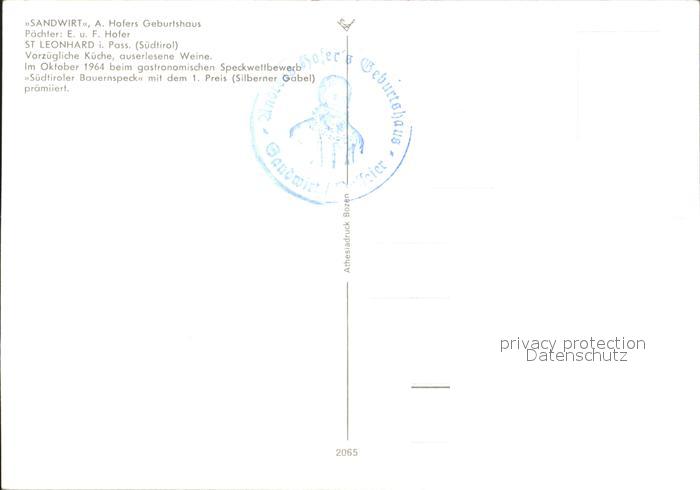 St Leonhard Passeier Gasthaus Sandwirt postalisch nicht gelaufen Erhaltung siehe scans