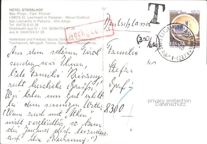old postcard St Leonhard Passeier Hotel Strobelhof postalisch gelaufen Erhaltung siehe scans