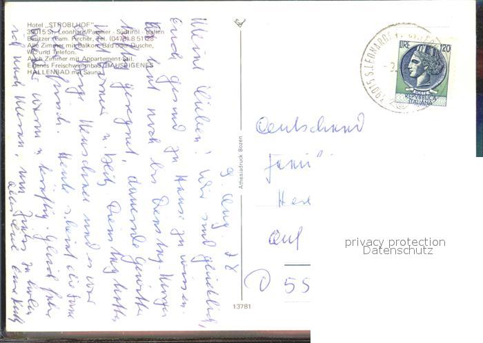 old postcard St Leonhard Passeier Hotel Stroblhof Gast und Aufenthaltsraum Swimmingpool postalisch gelaufen Erhaltung siehe scans