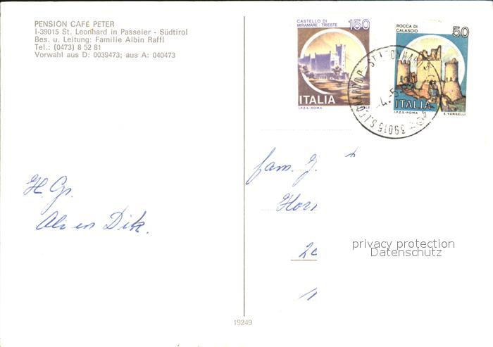 old postcard St Leonhard Passeier Pension Cafe Peter Alpenblick postalisch gelaufen Erhaltung siehe scans