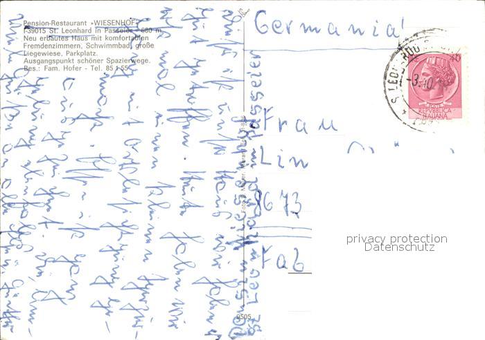 old postcard St Leonhard Passeier Pension Restaurant Wiesenhof postalisch gelaufen Erhaltung siehe scans