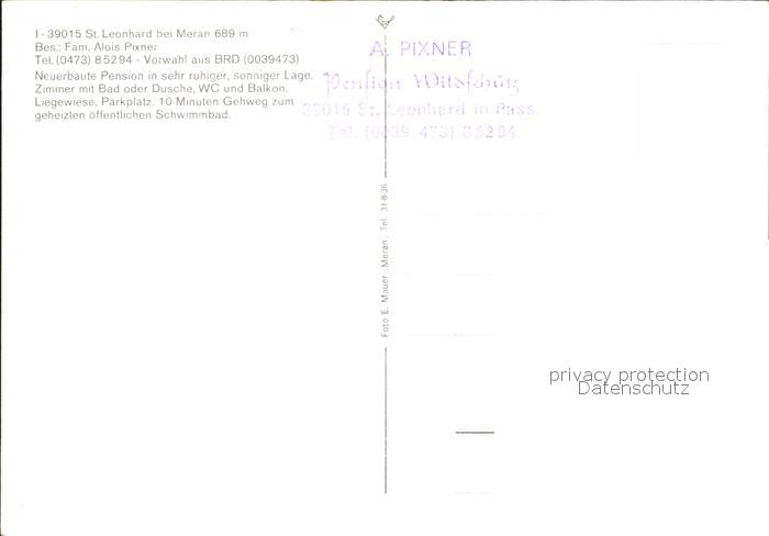 St Leonhard Passeier Pension Wildschuetz postalisch nicht gelaufen Erhaltung siehe scans