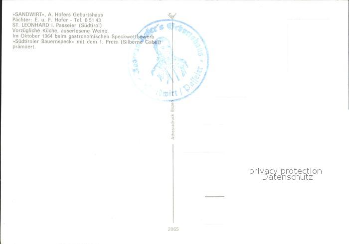 St Leonhard Passeier Sandwirt postalisch nicht gelaufen Erhaltung siehe scans