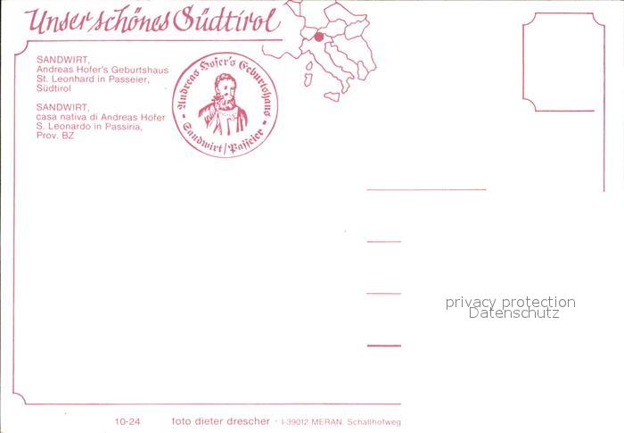 St Leonhard Passeier Sandwirt A. Hofers Geburtshaus Kapelle Kirche postalisch nicht gelaufen Erhaltung siehe scans