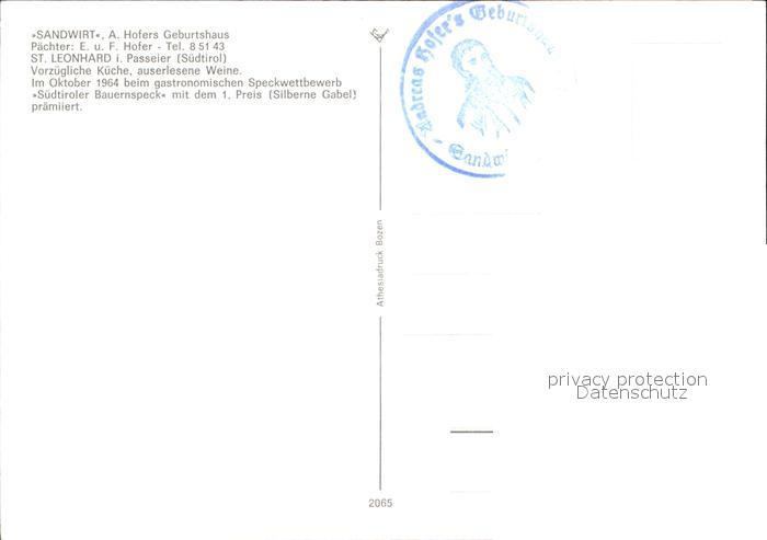 St Leonhard Passeier Sandwirt Hofers Geburtshaus postalisch nicht gelaufen Erhaltung siehe scans [WerneD78]