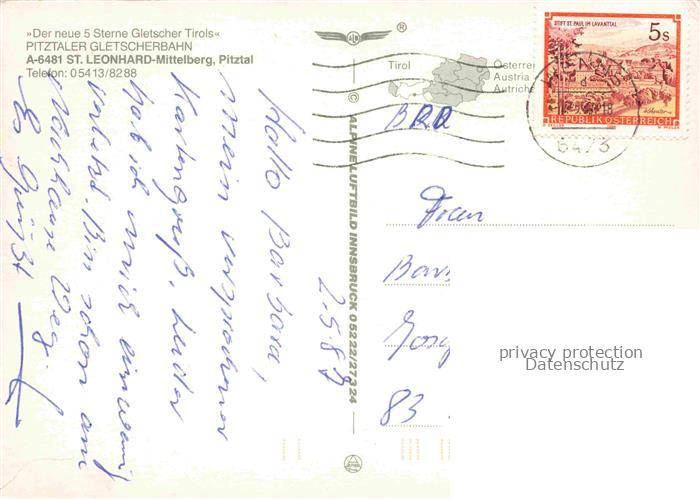 74033801 alte Postkarte St Leonhard Pitztal Tirol AT Pitztal Gletscher Gebirgspanorama Bergwandern Gletscherbahn postalisch gelaufen Erhaltung siehe scans [FriedD77] KatCode: 11390334070217