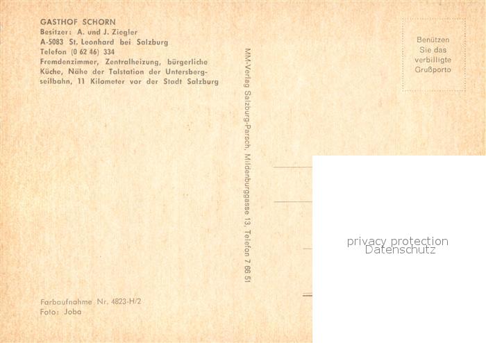 13187537 St Leonhard Salzburg Gasthof Schorn postalisch nicht gelaufen Erhaltung siehe scans [NatalD47] KatCode: 11390323050314