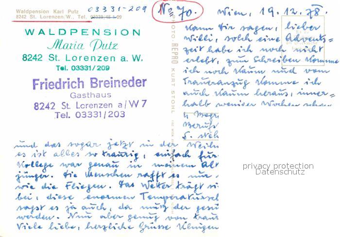 12636504 St Lorenzen Wechsel Waldpension Putz postalisch nicht gelaufen Erhaltung siehe scans [LiesaD40] KatCode: 11390225060303