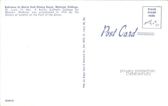 72486814 St Louis Missouri Entrance to Maria Hall Dining Room Webster College postalisch nicht gelaufen Erhaltung siehe scans KatCode: 14140