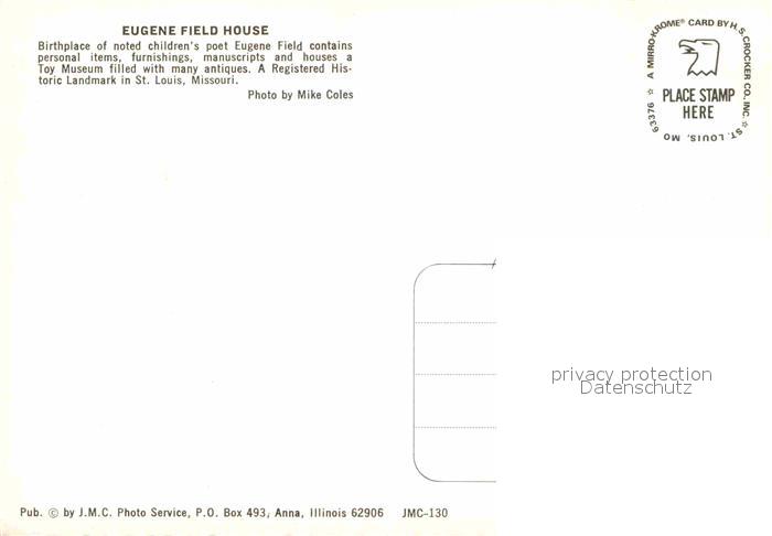 72668113 St Louis Missouri Eugene Field House postalisch nicht gelaufen Erhaltung siehe scans [WerneD78] KatCode: 14140