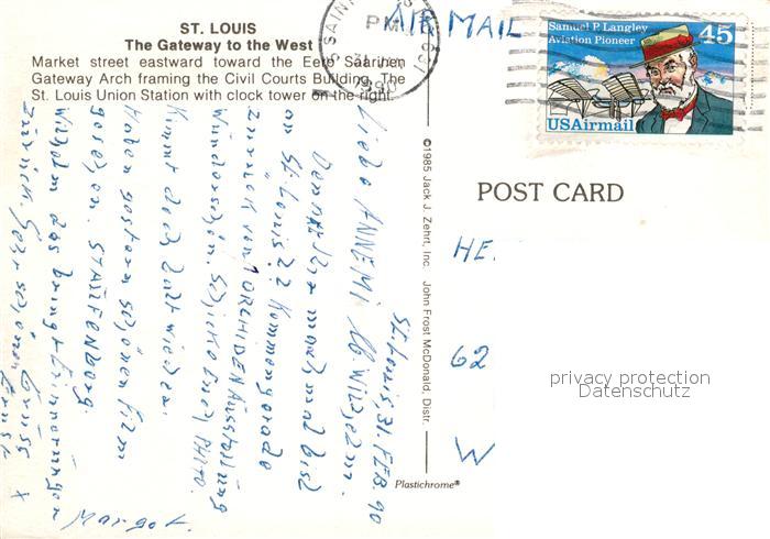 73192600 old postcard St Louis Missouri Market street clock tower postalisch gelaufen Erhaltung siehe scans [NatalD47] KatCode: 14140