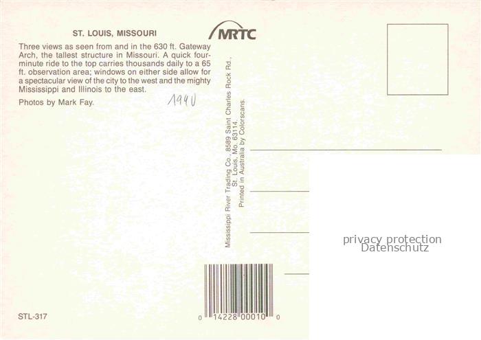 74025393 St Louis Missouri MO USA Gateway Arch postalisch nicht gelaufen Erhaltung siehe scans [FriedD77] KatCode: 14140