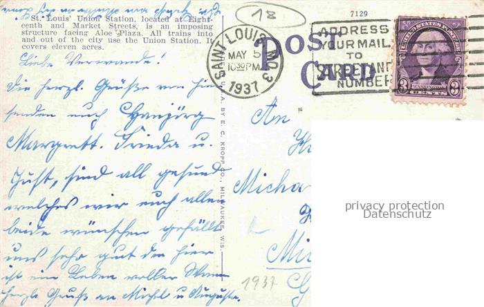 74113424 old postcard ST LOUIS Missouri (MO) USA Union Station postalisch gelaufen Erhaltung siehe scans [WerneD78] KatCode: 14140270000000