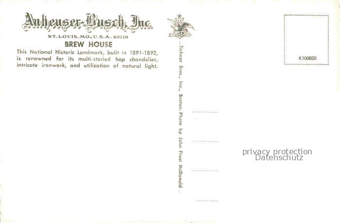 74056878 ST LOUIS Missouri USA Anheuser Busch Brew House postalisch nicht gelaufen Erhaltung siehe scans [WerneD78] KatCode: 14140270000000