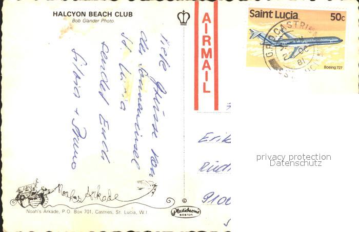 alte Postkarte St Lucia Halcyon Beach Club postalisch gelaufen Erhaltung siehe scans