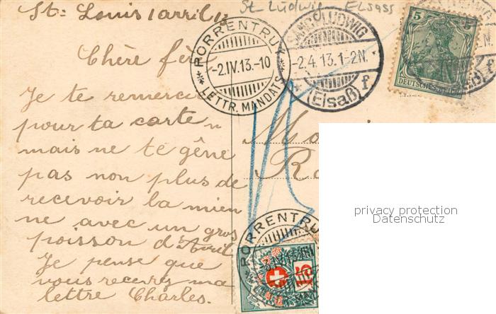 13768474 St Ludwig Elsass Saint-Louis Alsace 68 Baselerstrasse postalisch gelaufen Erhaltung siehe scans [LiesaD40] carte postale Lies Katcode 11170068468297