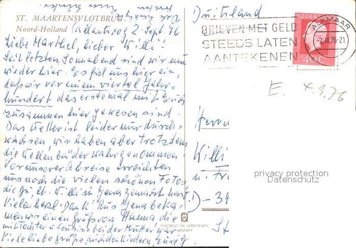 old postcard St Maartensbrug Noord Holland Bruecke, kleiner Hafen am See postalisch gelaufen Erhaltung siehe scans