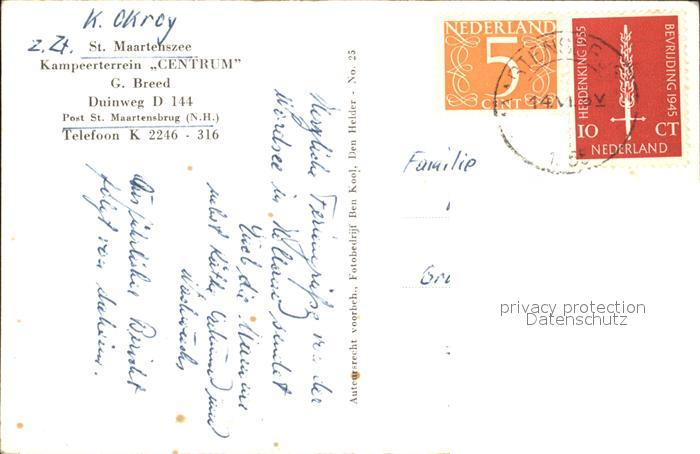 old postcard St Maartenszee Kampeerterrein Centrum postalisch gelaufen Erhaltung siehe scans [WerneD78]