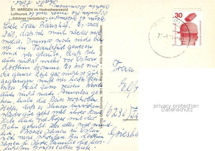 73190268 alte Postkarte St Maergen postalisch gelaufen Erhaltung siehe scans [NatalD47] KatCode: 11110008315094