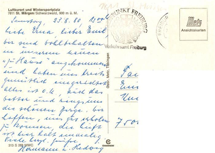 73929315 alte Postkarte St Maergen Brunnen Kirche Portal Kaelle postalisch gelaufen Erhaltung siehe scans [FriedD77] KatCode: 11110008315094