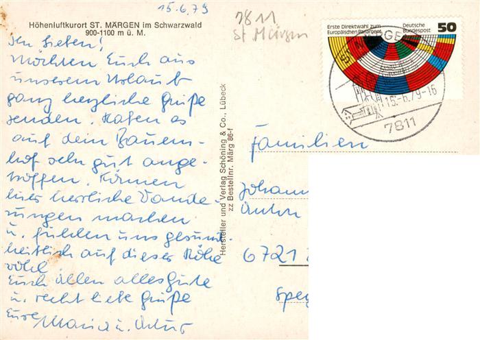 73929364 alte Postkarte St Maergen Fliegeraufnahme mit Kirche postalisch gelaufen Erhaltung siehe scans [FriedD77] KatCode: 11110008315094