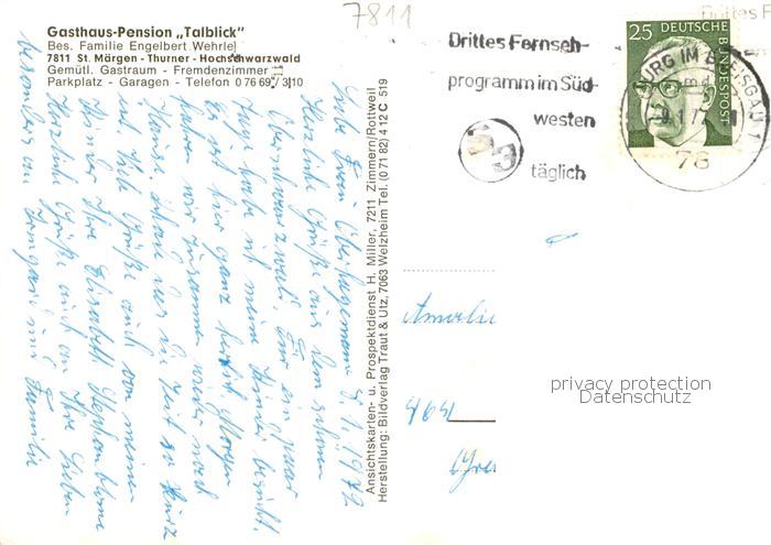 73864154 alte Postkarte St Maergen Gasthaus Pension Talblick postalisch gelaufen Erhaltung siehe scans [WerneD78] KatCode: 11110008315094