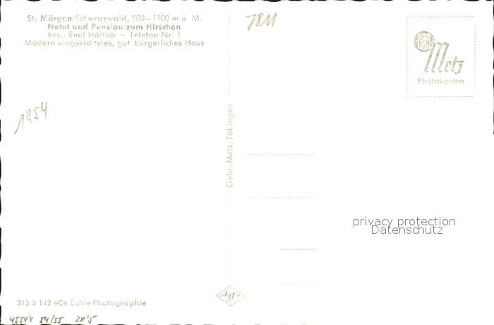 31734544 St Maergen Gasthaus Pension zum Hirschen postalisch nicht gelaufen Erhaltung siehe scans KatCode: 11110008315094