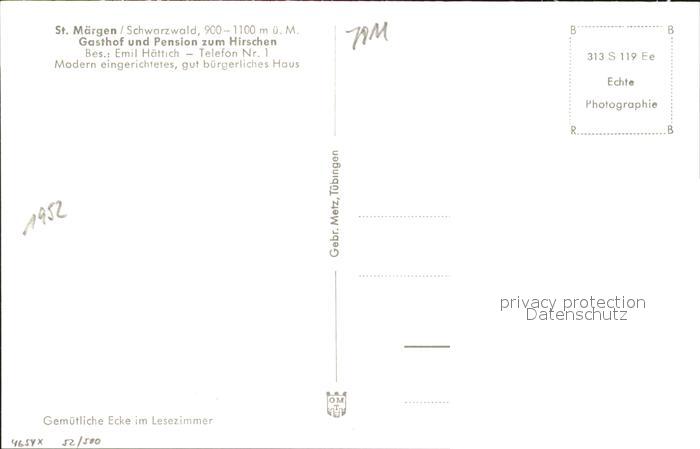31734540 St Maergen Gasthaus Pension zum Hirschen postalisch nicht gelaufen Erhaltung siehe scans KatCode: 11110008315094