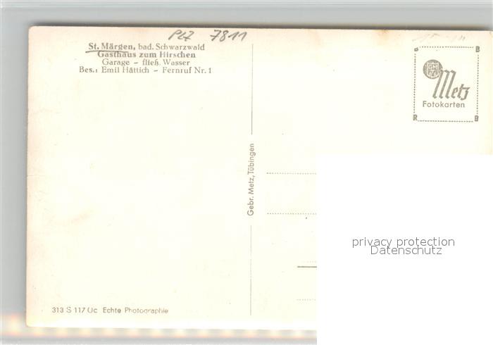 43309460 St Maergen Gasthaus zum Hirschen postalisch nicht gelaufen Erhaltung siehe scans [NatalD47] KatCode: 11110008315094