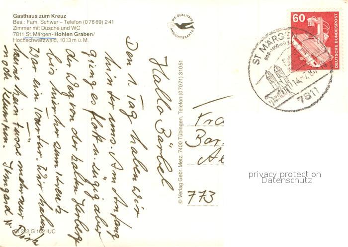 73704126 alte Postkarte St Maergen Gasthaus zum Kreuz Restaurant Landschaftspanorama Schwarzwald postalisch gelaufen Erhaltung siehe scans [FriedD77] KatCode: 11110008315094