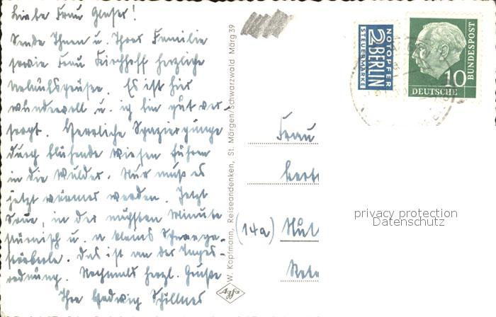 72453763 alte Postkarte St Maergen Gesamtansicht Hoehenluftkurort Blick zum Feldberg Schwarzwald postalisch gelaufen Erhaltung siehe scans KatCode: 11110008315094
