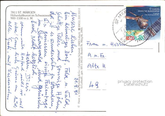 72238728 alte Postkarte St Maergen Hoehenluftkurort Kirche Schwarzwald Fliegeraufnahme postalisch gelaufen Erhaltung siehe scans KatCode: 11110008315094