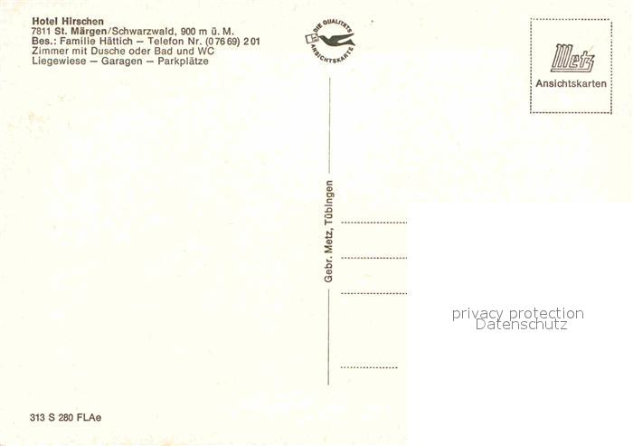 72851965 St Maergen Hotel Hirschen Tuerschild Gartenterrasse postalisch nicht gelaufen Erhaltung siehe scans [FriedD77] KatCode: 11110008315094