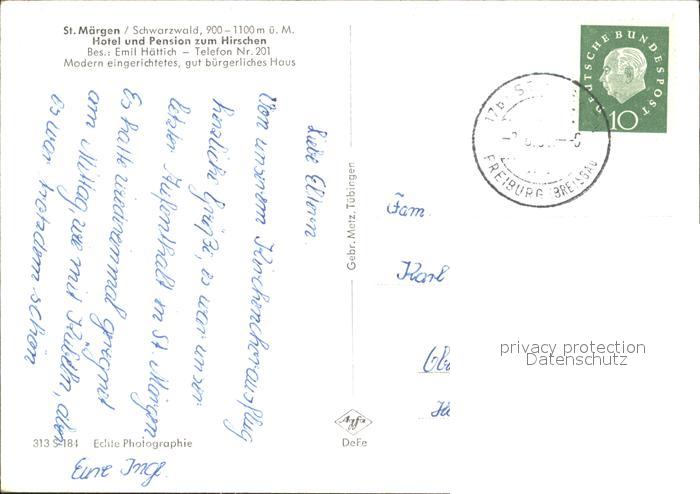 71838069 alte Postkarte St Maergen Hotel Pension zum Hirschen Terrasse postalisch gelaufen Erhaltung siehe scans KatCode: 11110008315094