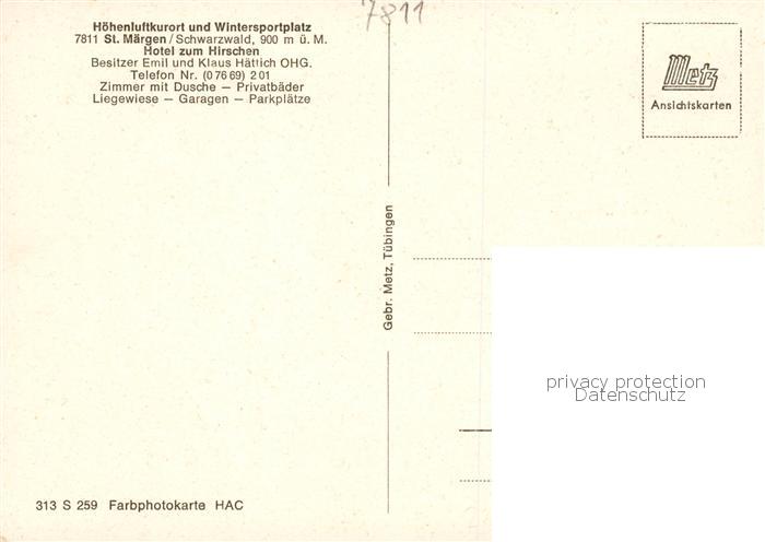 73870864 St Maergen Hotel zum Hirschen postalisch nicht gelaufen Erhaltung siehe scans [WerneD78] KatCode: 11110008315094