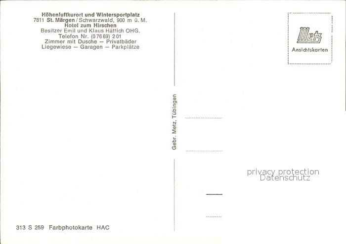 71944688 St Maergen Hotel zum Hirschen postalisch nicht gelaufen Erhaltung siehe scans KatCode: 11110008315094