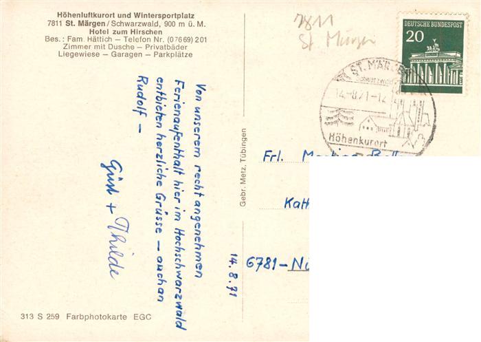 73929372 alte Postkarte St Maergen Hotel zum Hirschen postalisch gelaufen Erhaltung siehe scans [FriedD77] KatCode: 11110008315094