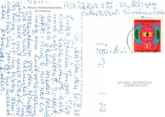 72641791 alte Postkarte St Maergen Kirche Ortsansich Feldberg postalisch gelaufen Erhaltung siehe scans [KathaD79] KatCode: 11110008315094